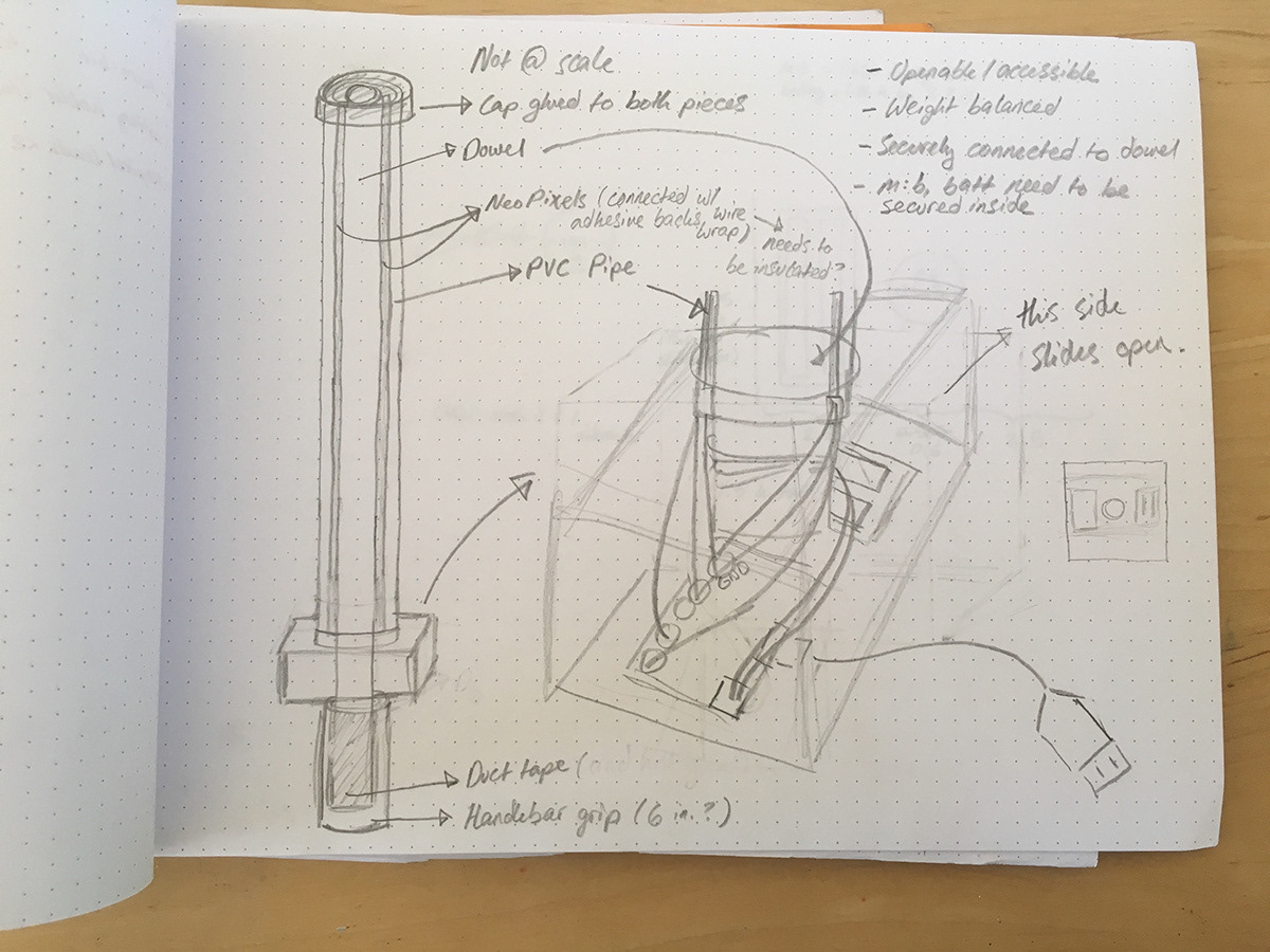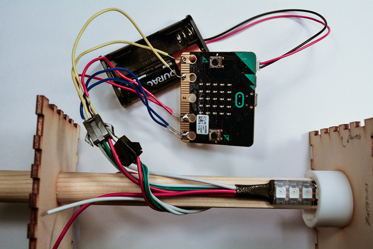 The sabers ran on BBC micro:bit microcontrollers and NeoPixel LEDs. Unlike typical homemade lightsabers, they changed color based on 6DOF data, meaning that their color was mapped to the movements of the dancers holding them in long-exposure photographs.